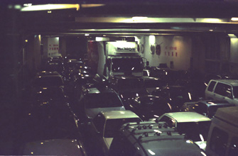 右:フェリーに初めて乗った僕にとってはこの光景は少し奇妙に思えた。