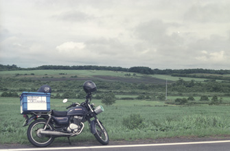 そろそろ暗くなり始めたし、今日はどこに泊まろうかなと考えていた矢先に、どしゃぶりの雨となってしまった。これがテントを張った後だったらまだしも、こうなると惨めなものである。しかも、摩周湖を出てから、走行中に、目のすぐ下に大きな虫が当たって、片目が腫れてしまったのである。走り出してバイザーを下げようとした時だった。時速は60q/h以上出ていたから、たかが虫とはいえとても痛かったし、結構な傷になってしまった。そんなこんなで今日はほとほと疲れたので、どこかで落ち着いて食事がしたかったが、こんなずぶ濡れではそれも出来ない。しかし大雨の中、定食屋が見つかったので、そこでバイクを停めて店に入った。